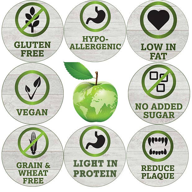 (Gingerbread Man) Peanut Butter & Apple with Cinnamon (Reindeer) Sweet Potato & Cranberry with Peanut Butter Ginger & Dasher come in 2 sizes.